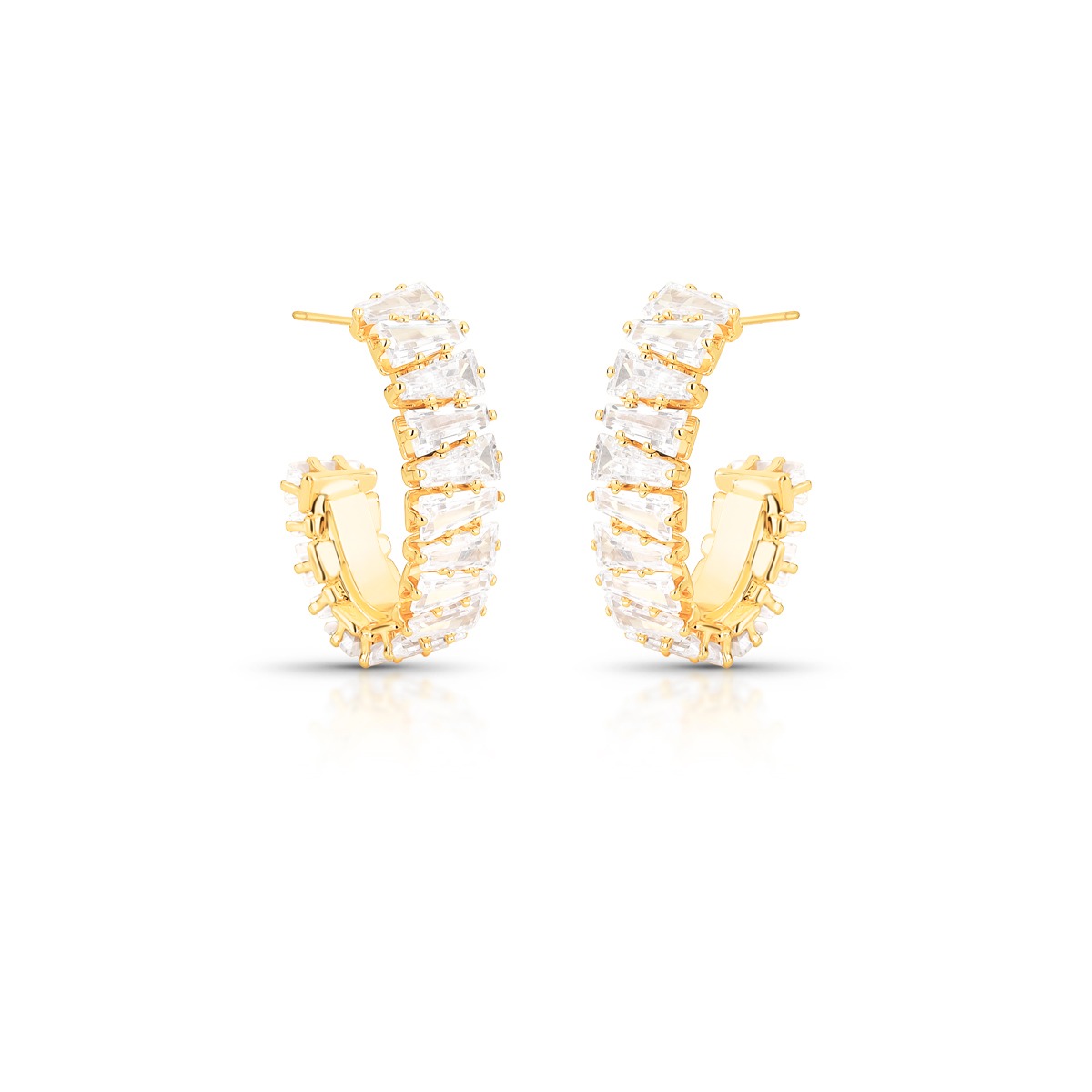 Argola cravejada com Cristais - Banho Ouro 18k