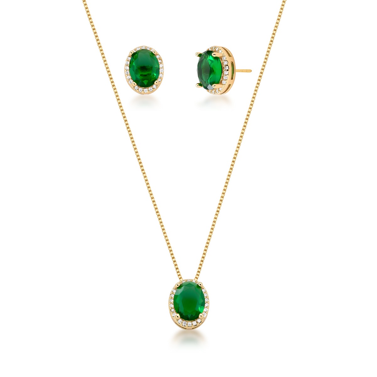Conjunto Esmeralda Oval - Banho Ouro 18k